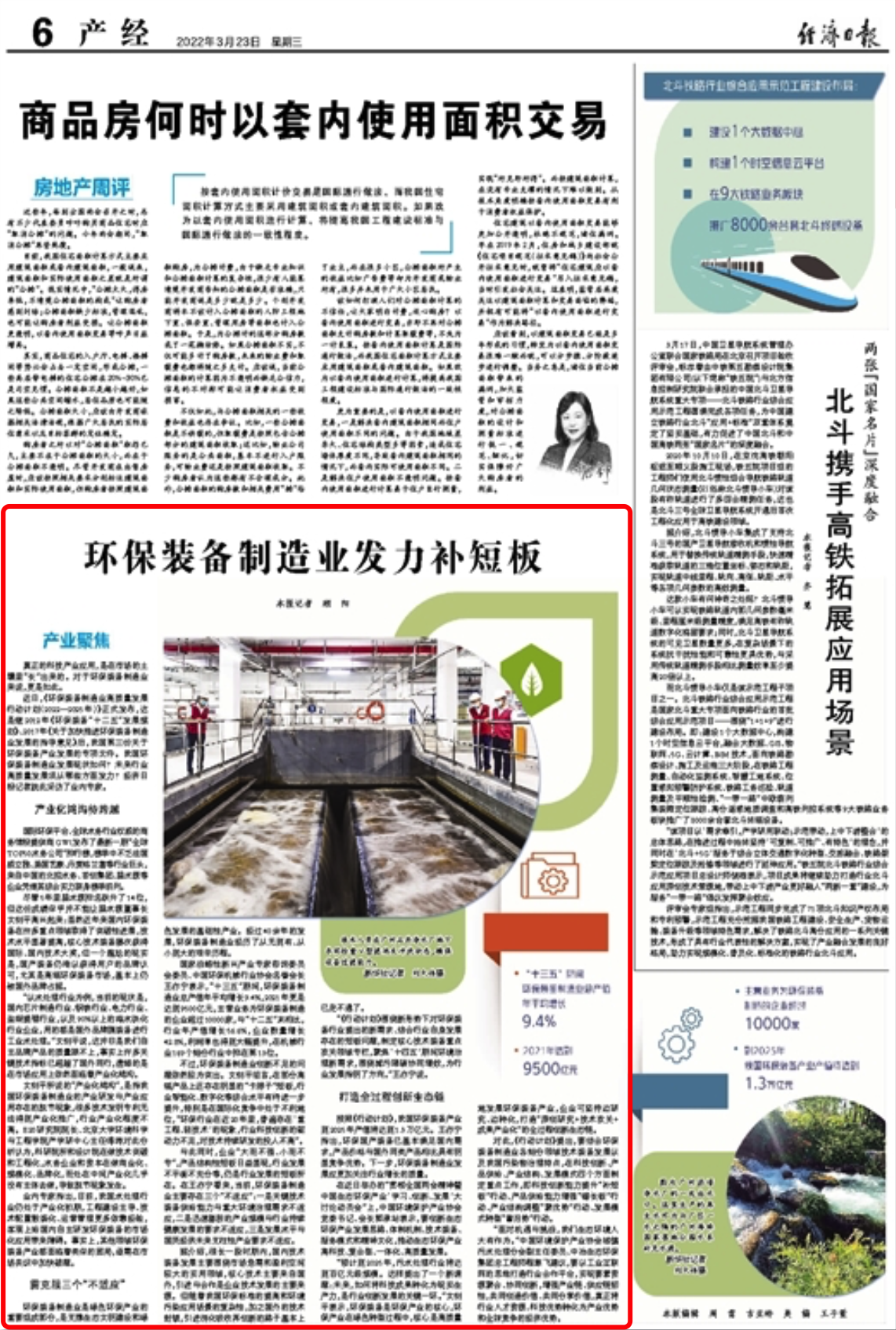 導(dǎo)讀:3月23日,經(jīng)濟(jì)日報(bào)發(fā)表了文章《環(huán)保裝備制造業(yè)發(fā)力補(bǔ)短板》,對工信部、科技部、生態(tài)環(huán)境部等三部門日前聯(lián)合印發(fā)的《環(huán)保裝備制造業(yè)高質(zhì)量發(fā)展行動計(jì)劃(2022―2025年)》進(jìn)行報(bào)道。
